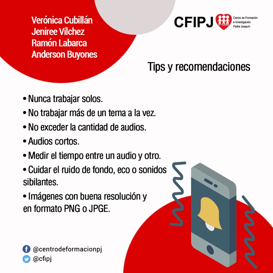 - Desarrollo de ideas: Cada audio debe presentar una idea central y desarrollar el contenido en función de ella, que no debe exceder en tiempo. Los audios tienen que ser coherente entre unos y otros.