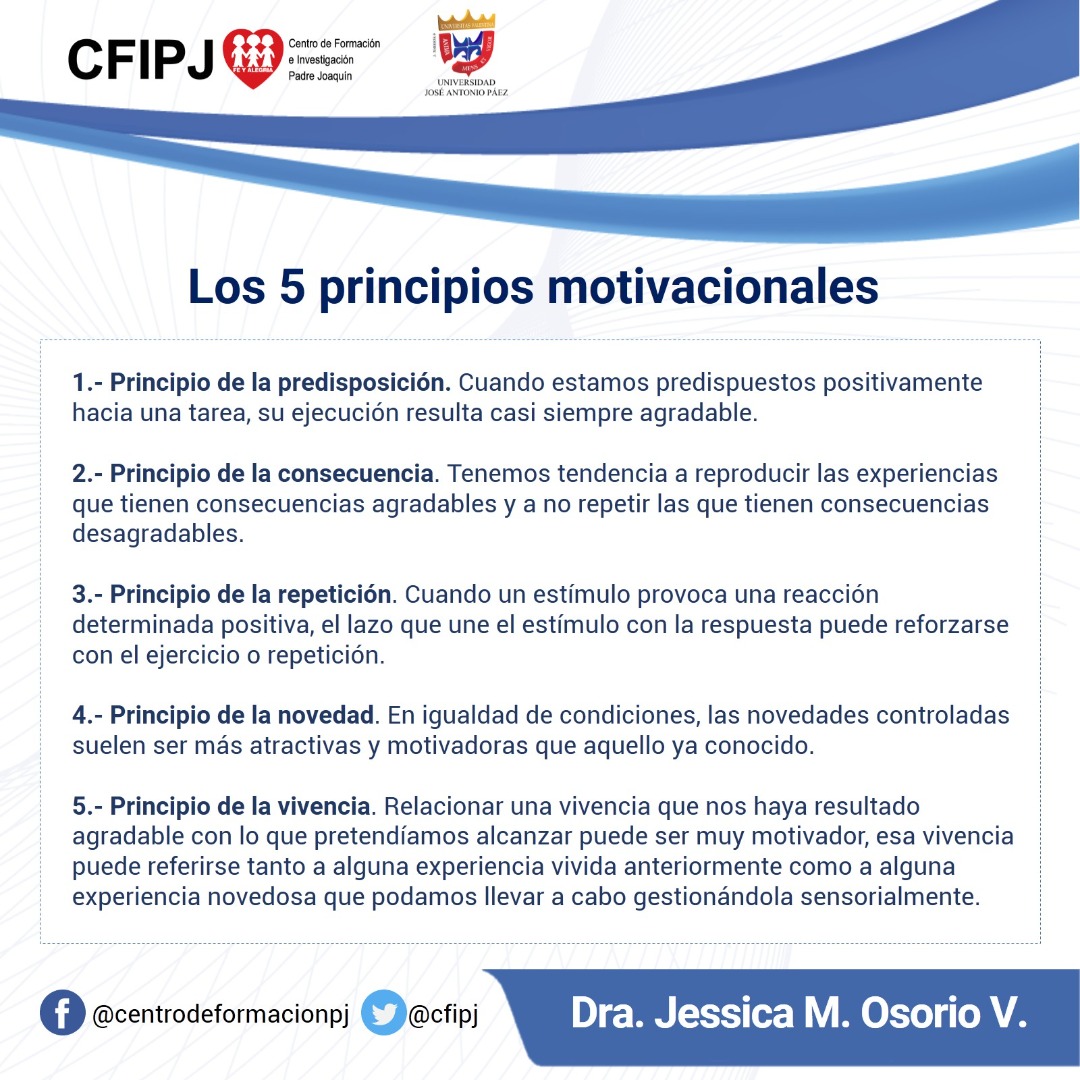 La motivación es un conjunto de factores internos y externos que determinan las acciones de una persona. Para ello se deben considerar cinco principios motivacionales: